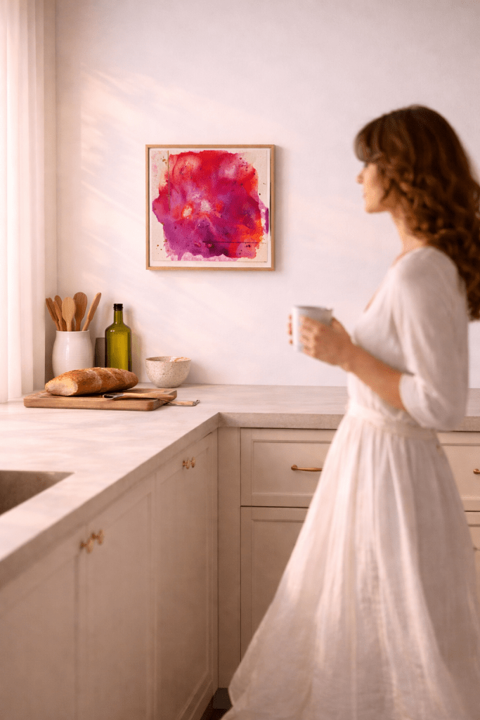 Du bist dir nicht sicher ob dieses Kunstwerk zu dir passt? Ich erstelle dir gerne kostenlos ein Mockup und zeige dir wie das Bild in deinem Raum wirkt.